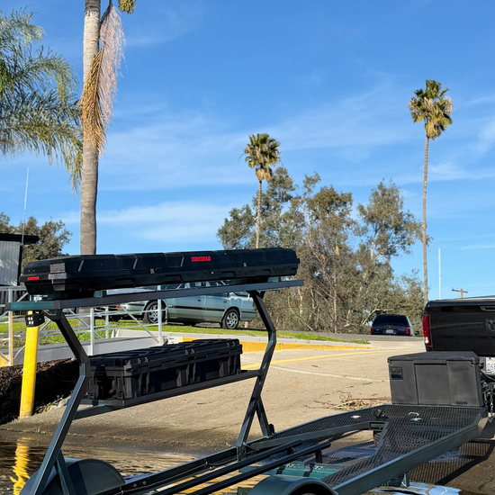 You the customer can pick every option including which side the walking platform goes on to which side the rack goes on. Want to add a custom ROAM Storage box below the upper rack? We’ve got you covered. Add a folding tongue? We’ve got you covered. We can also move the bow box to the tongue allowing full access to the front walking platform.